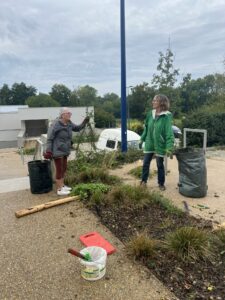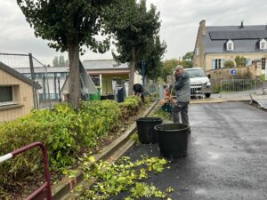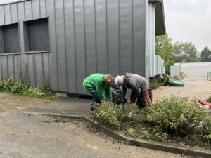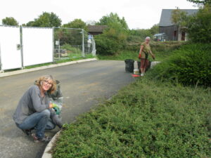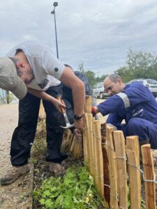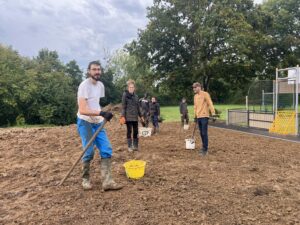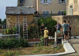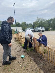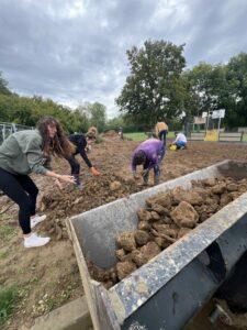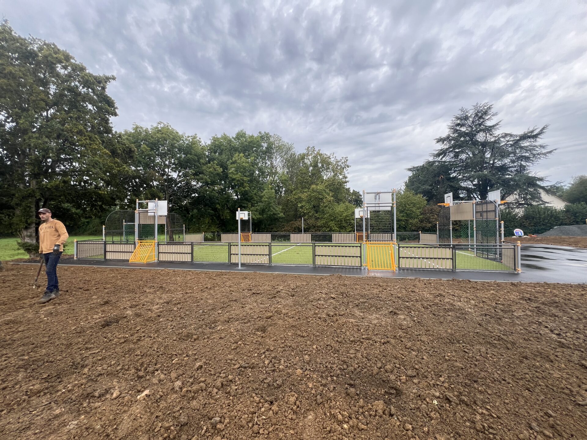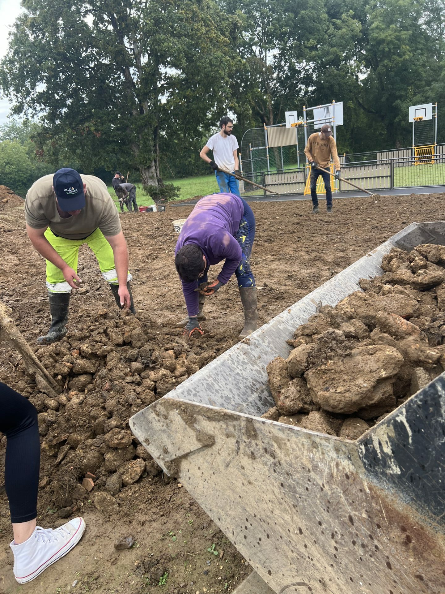•  la préparation du terrain autour du citystade en enlevant les pierres pour permettre de semer le gazon.