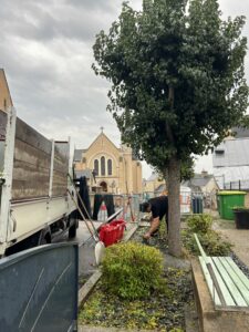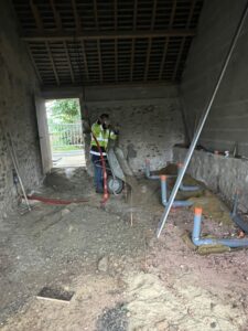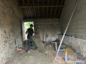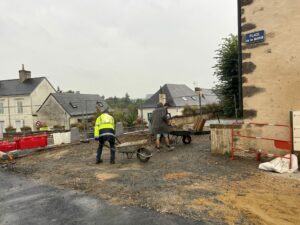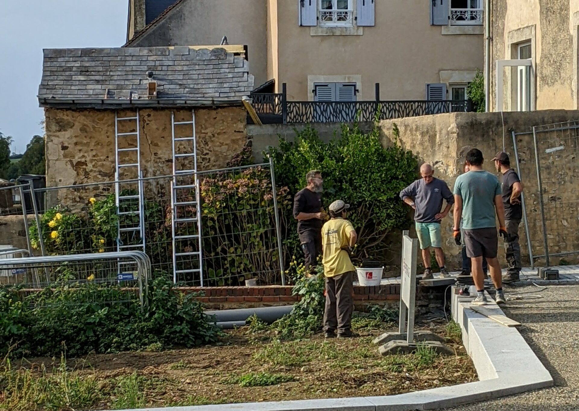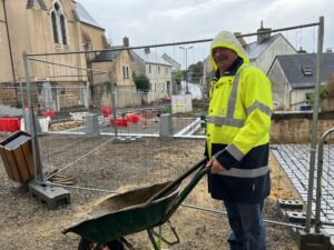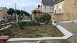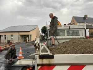 •  le remblaiement avant de faire ensuite, la dalle béton et l’aménagement, pour les futures toilettes publiques