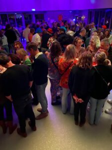 Les lumières tamisées, le dance floor, la musique, la boule à facette et les costumes des acteurs-actrices ont plongé les participants dans l’ambiance dès les premières minutes.
