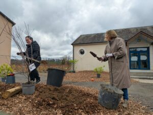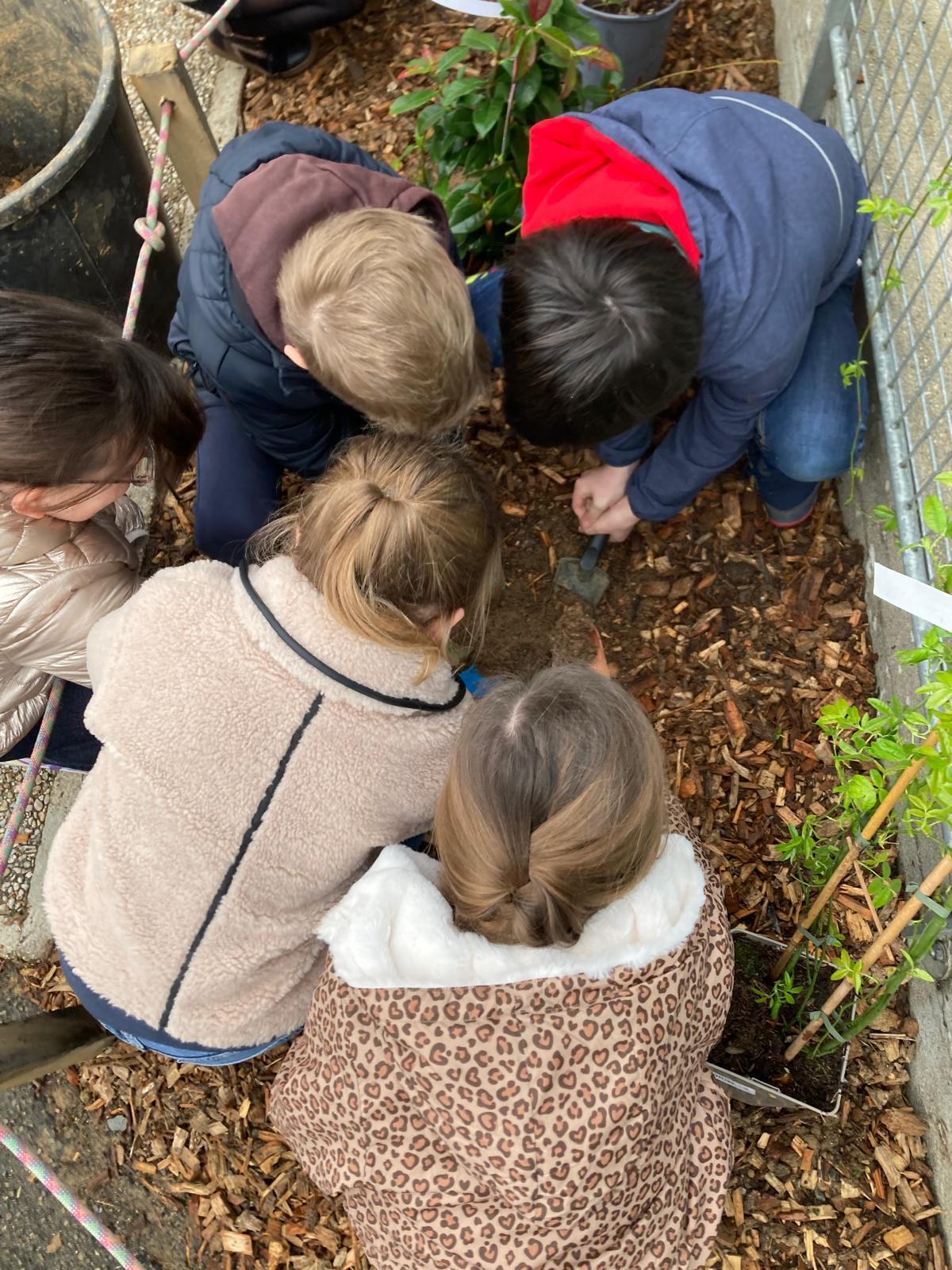 Après les ateliers menés avec les élèves pour imaginer la future cour et les travaux de débitumage, place aux plantations !